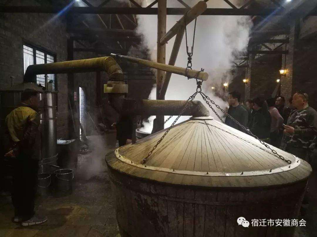 在高炉酒厂负责人王勇等热情陪同下,考察团参观了厂区面貌、酒厂展览馆、窖池、生产车间等处,品尝了新酿原浆。大家在参观中随处感受到酒厂浓郁的道家文化,无不被醇美的酒香所折服,特别是酒厂新品高炉家和谐年份酒作为春节前宿迁市安徽商会年会用酒给大家留下了深刻印象。考察期间,部分会员与酒厂进行了意向合作洽谈。